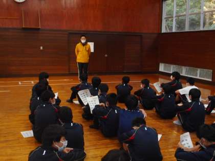 放課後の部活動の時間に,トレーナーステーション整骨院の方にお越しいただき,ストレッチの方法を学習しました。ケガ予防のための体のケアや成長期の体について教えていただき,非常に有意義な時間となりました。今後の活動にぜひ活かしていこうと思います。お忙しい中ありがとうございました。