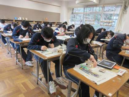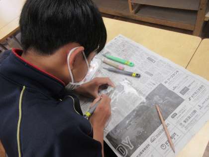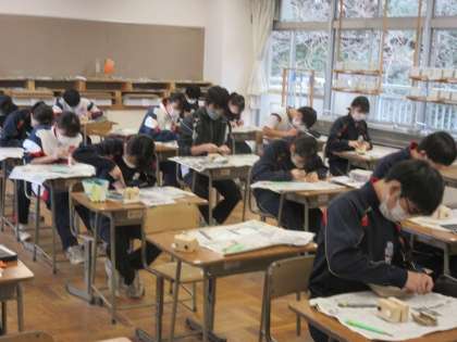 篆刻の学習です。印面や持ち手など,集中して彫っています。どんな作品が出来上がるのか,楽しみですね。