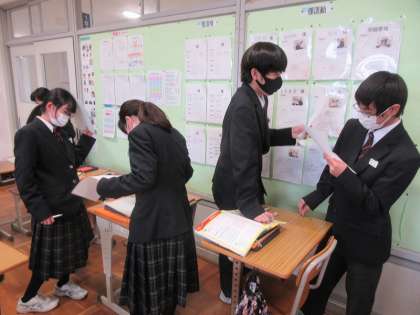 Who is my hero? 好きな有名人や憧れの人について調べました。ペアになり,その人について説明したり,尋ねたりしています。