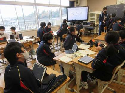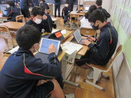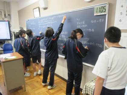 アフリカ州の課題や解決策について学習しています。各版毎に調べたことを黒板に書き,発表することで,全体で共有しています。