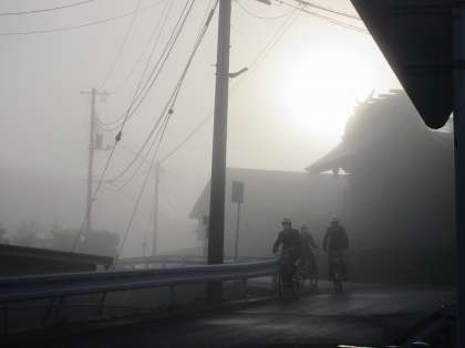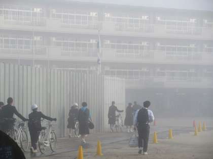 登校時刻にも霧の濃い冷え込んだ朝です。防寒着や手袋等をして登校している生徒が増えています。防寒対策をして安全に登校してくださいね。