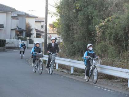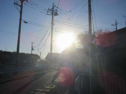 冬晴れの朝です。気温が低く,水たまりが凍っている場所もありました。この時期,朝の太陽も低く眩しくなっています。安全に登下校をしてくださいね。