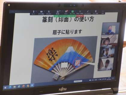私の印(篆刻 てんこく)を制作します。印面のアイディアスケッチから下絵をデザインしていきます。できた篆刻は,各自制作した扇子に貼ります。想像しただけでも,すてきです。自分だけの篆刻,楽しみですね。