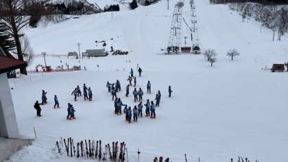 部屋の整理をして、ゲレンデに出てきました。 クラス集合写真を撮ります!