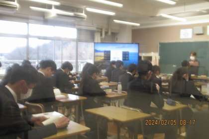 今日の愛宕中学校は,2・3年生のみの生活です。1年生はスキー学習がんばっています。