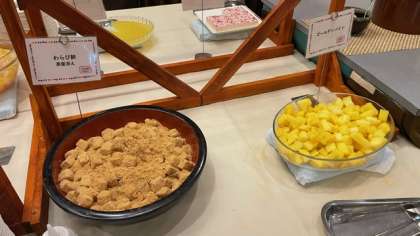 デザートのわらび餅とフルーツポンチ!