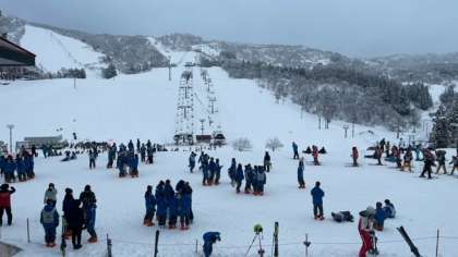 スキー講習を終えて、続々と集合場所に戻ってきました!