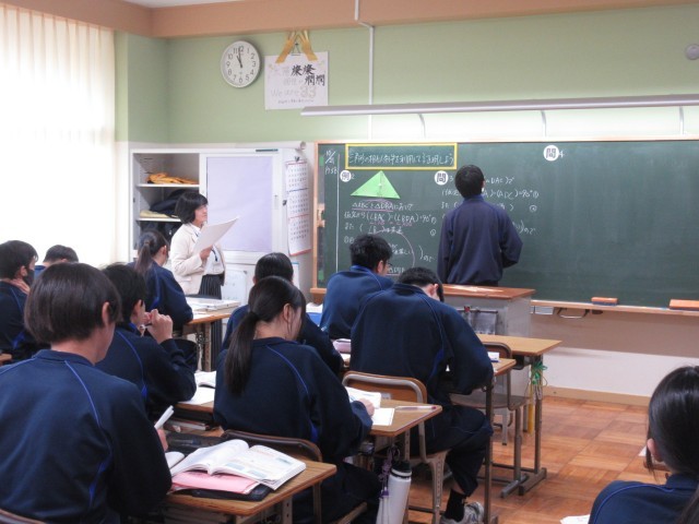 3年生の数学の授業では、相似条件を利用した証明問題に取り組んでいました。さすが受験生、皆真剣に取り組んでいました。