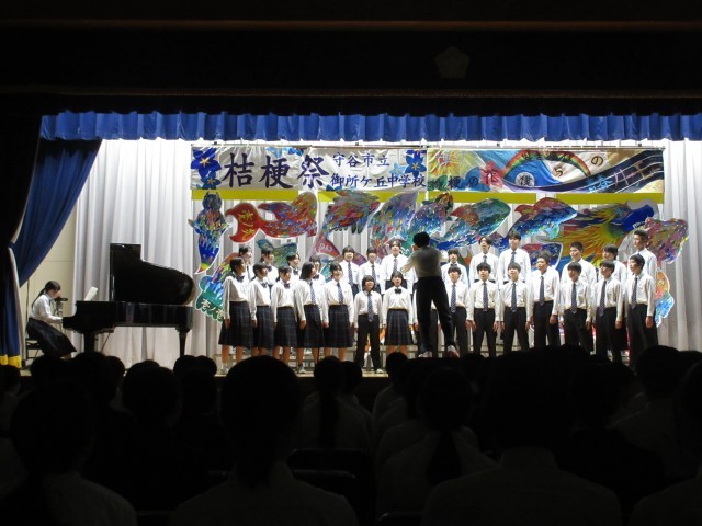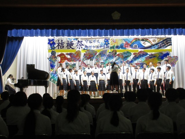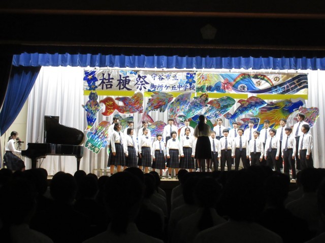 午前中には合唱コンクールが行われました。各学級では、この日に向けて、朝や昼休み、放課後等、使える時間を全て使って練習に取り組んできました。これまでの練習過程においては、意見がぶつかったり、うまくいかないこともあったと思いますが、今日は素晴らしい合唱を響かせてくれました。