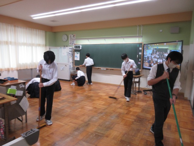 先生たちも、生徒と一緒になって清掃に取り組んでいます。