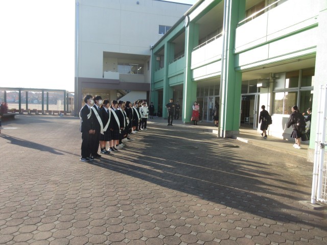 登校してくる生徒たちを前に、元気にあいさつし、自分の乃前を覚えてもらおうと意欲的に活動をする姿が見られました。