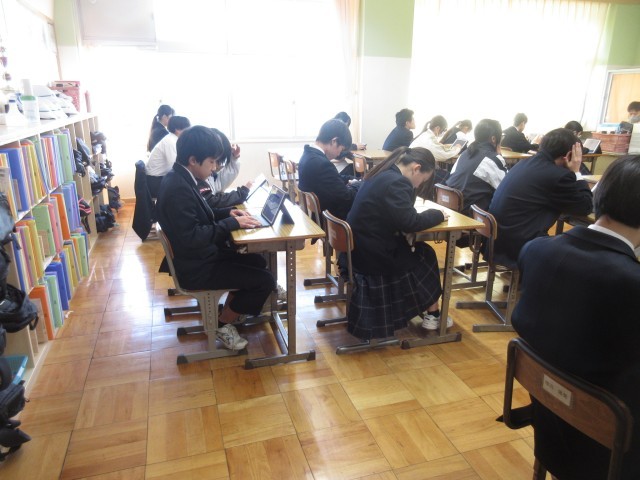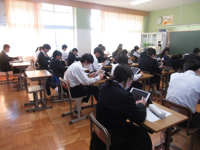 生徒会役員選挙はタブレットを使用し、投票フォームから選択する方式でした。どの学級も真剣にタブレットに向き合い、投票する立候補者を選んでいました。