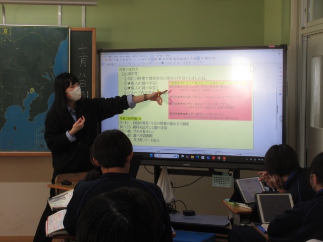 生徒たちは真剣に先生の説明を聞き、見通しを立てていました。