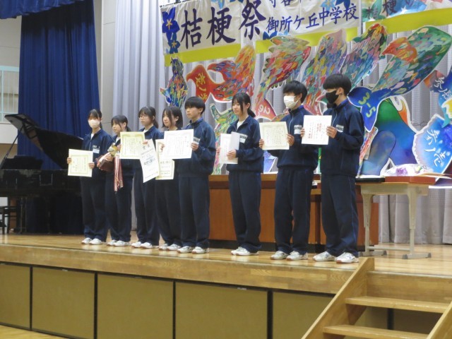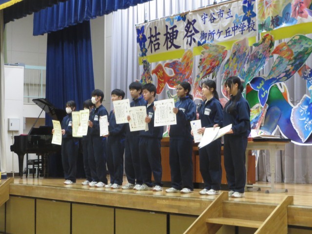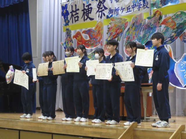 今日は冬休み前最終日、5校時には全校集会を行いました。その中で、10月以降の表彰式も行い、延べ8チーム、75名もの生徒が表彰を受けました。