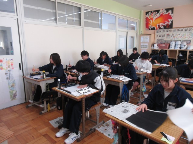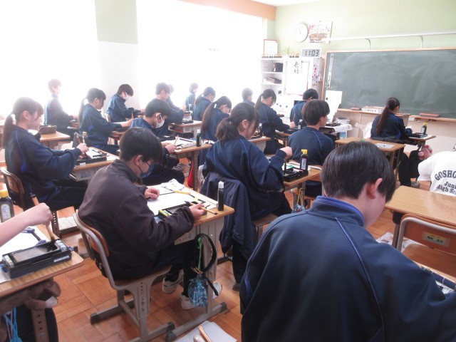 2年生の国語の授業では、習字に取り組んでいました。