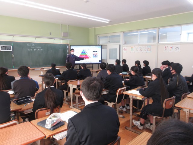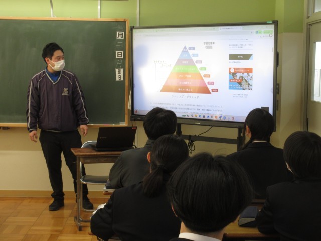 3年生の理科の授業では、受験に向けたプリント学習の前に、先生から「ラーニングピラミッド」についての説明がありました。