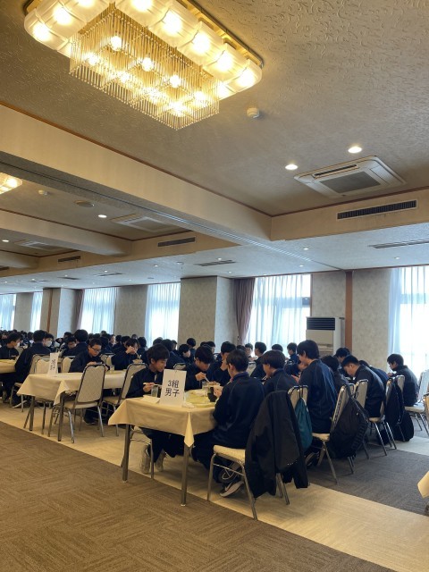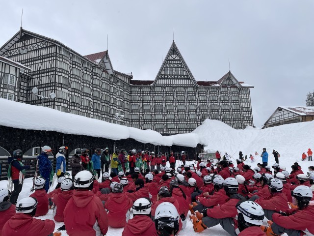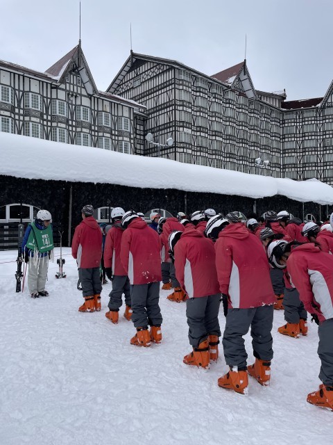 スキー実習が無事に終わり、閉校式ではインストラクターさんにみんなでお礼を伝えることができました。お昼ごはんの生姜焼き丼をいただき、帰りの準備をしています。