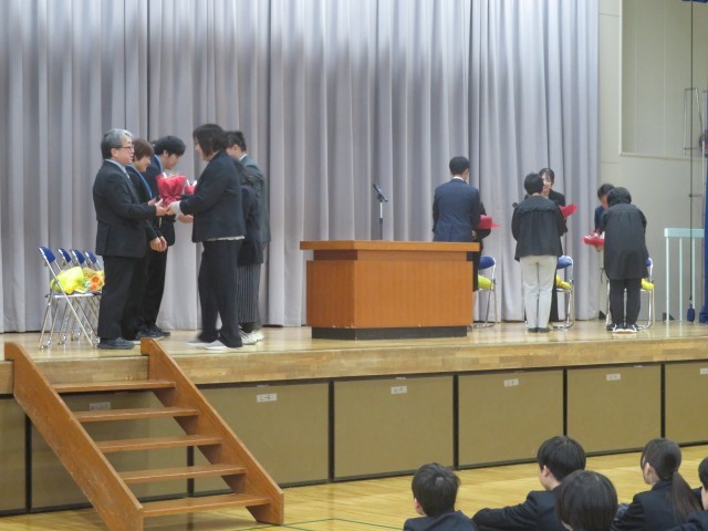 式では、転退職される7名の先生方に対し、花束を渡した後に、一人ずつお話をしていただきました。
