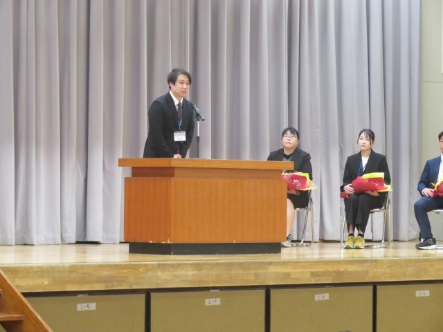 それぞれの先生方からは、御所ケ丘中学校での思い出や生徒、保護者の皆様に対する感謝の言葉が述べられました。今回転退職される先生方は、在籍年数は様々ですが、御所ケ丘中学校の生徒たちのために尽力していただきました。