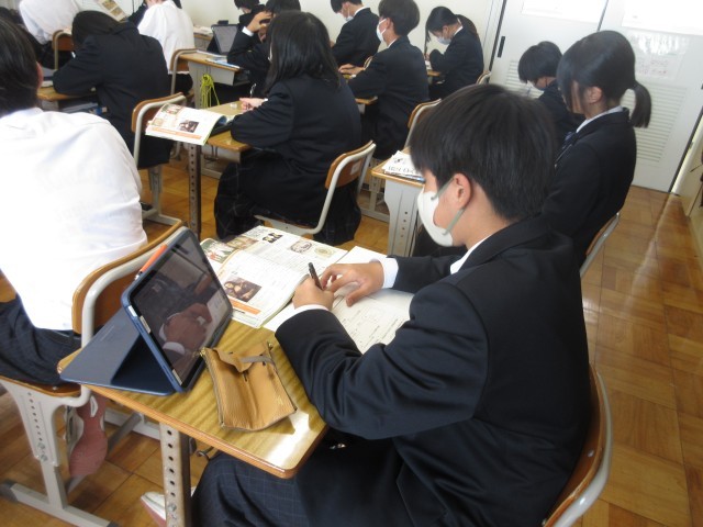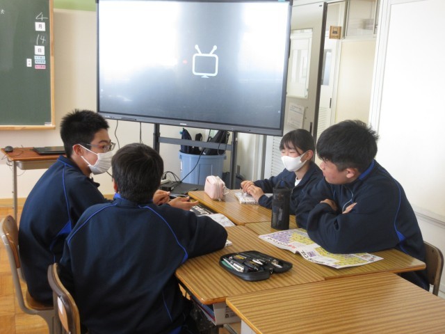 2年生は既に授業開きを終えていた社会科では、早速授業が行われていました。昨日授業開きで確認したとおり、ワークシートをノートを使い分けながら、先生の話を聞いてワークシートに書き込んでいました。