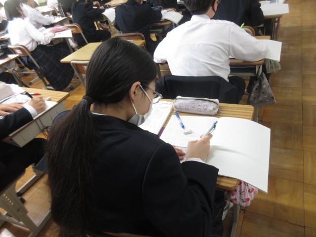 社会科の授業では、ヨーロッパの海外進出によって、世界の状況がどのように変化したかについて学習していました。社会科でも、理科と同様に、自分の考えを一生懸命ノートにまとめる生徒の姿が見られました。授業開きで教わったノートの使い方を最大限に活用していました。