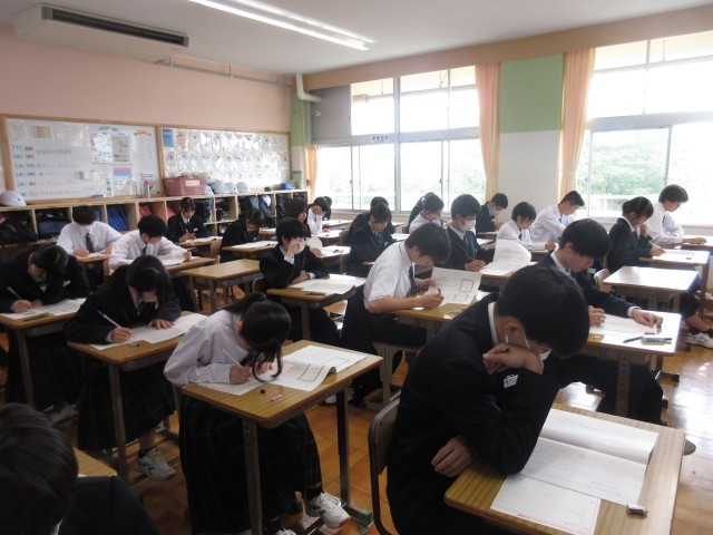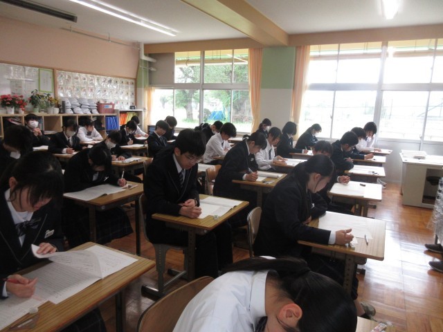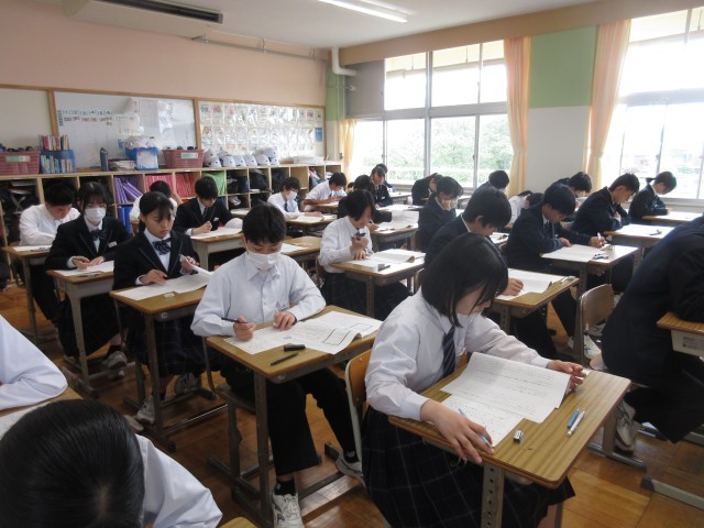 3年生はどのクラスでも真剣な表情で問題に向き合い、テストに取り組んでいました。