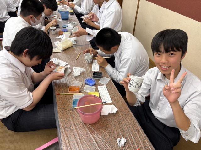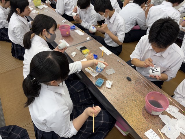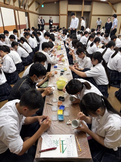 絵付体験では、思い思いのデザインや言葉を飾り付け、この世に一つだけの清水焼を仕上げていました。普段なかなかできない体験に、集中して取り組んでいました。