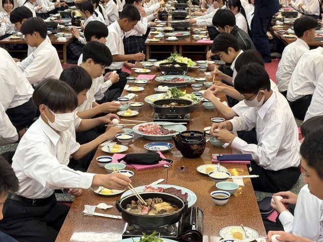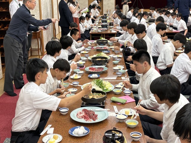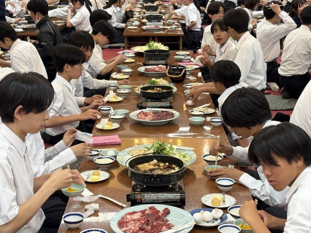 2日目夜の夕食です。今日はすき焼きでした。