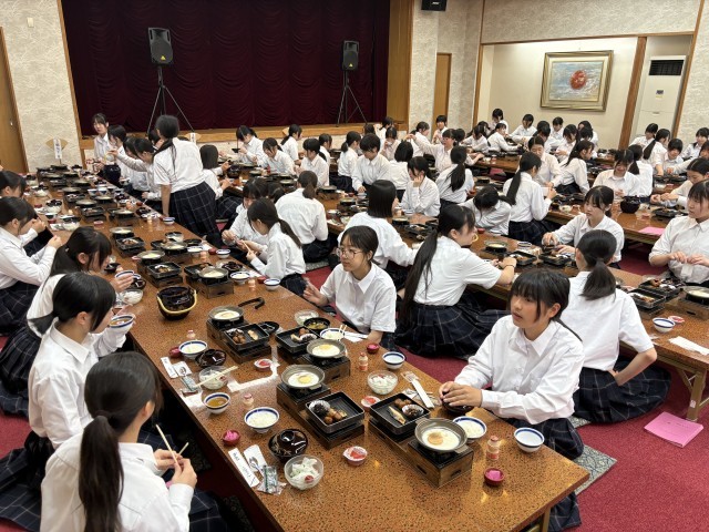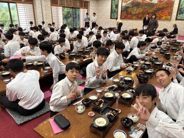朝食後には退館式を行い、代表生徒が旅館の皆さんにお礼の言葉を述べました。