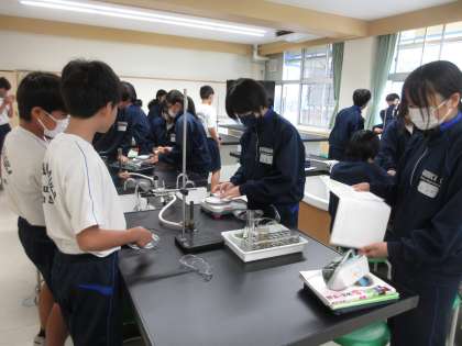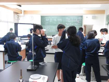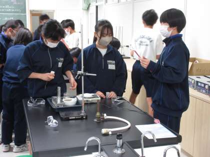 5月17日(金)今日の授業風景 その6 公開日 2024/05/17 更新日 2024/05/17 お知らせ 2年生の理科の授業の続きです。 保護めがねをつけ、この後、いよいよ実験に取り組みます。実験を通して、化学変化のイメージを広げていくことでしょう!