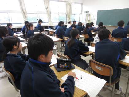 5月20日(月)今日の授業風景 その5 公開日 2024/05/20 更新日 2024/05/20 お知らせ 3年生の総合的な学習の時間の続きです。 となりのクラスでも「奈良・京都のスライド発表」をしていました。教室を訪ねたときは、ちょうど「清水寺の秘密」について、調べたことを発表している場面でした。清水寺は釘を1本も使っていないことを発表していました。日本の建築技術の素晴らしさに改めて気付く生徒たちです!