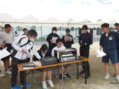 5月21日(火)放課後の様子 【体育祭係活動】 公開日 2024/05/21 更新日 2024/05/21 お知らせ 放課後、体育祭準備のため係活動が行われています。ラインをひくポイントをうったり、スタートの合図を出す練習をしたり、放送の練習をしたり・・・。体育祭に向け、係の担当になっている生徒たちが熱心に活動していました。