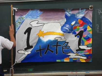 5月23日(木)体育祭前日特集【1年1組 学級旗紹介】 公開日 2024/05/23 更新日 2024/05/23 お知らせ 1年1組の学級旗には「1人1人の個性を生かし、1番を目指す。そんな思いを富士山よりも高く 大空に舞い昇るいろいろな龍を表現した。」という思いや願いが込められています。大きな目標に向かって、力強い龍のように昇っていってほしいです!