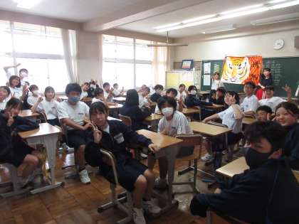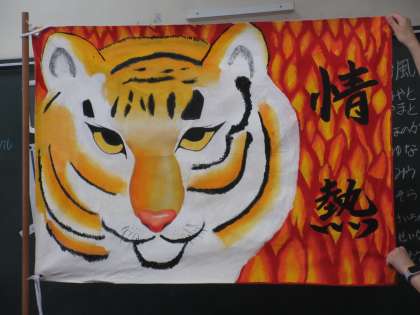 5月23日(木)体育祭前日特集【1年2組 学級旗紹介】 公開日 2024/05/23 更新日 2024/05/23 お知らせ 1年2組の学級旗には「このトラのようにかっこよく、そして何事にもあきらめない強い心をもったクラスになりたい」という思いや願いが込められています。強い心をもって、みんなで様々な困難の乗り越え、絆を深めていってくれることでしょう!
