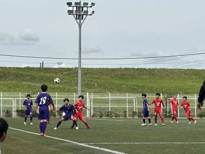 サッカー場では、一進一退の熱い試合が展開されています。