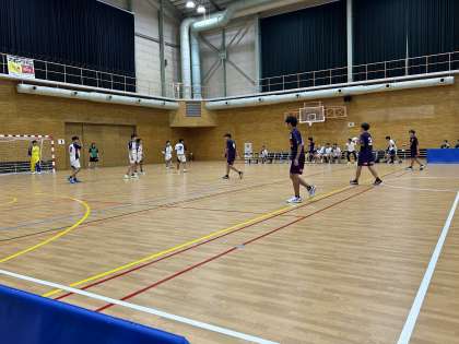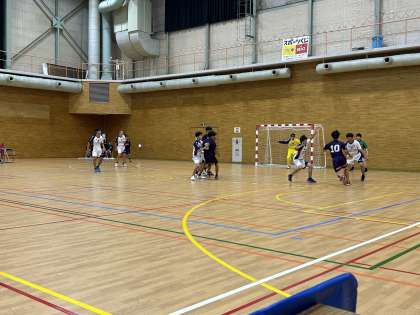 男子ハンドボール部の活躍の様子です。第2試合に臨んでいます。ゴールを粘り強くねらう気持ちが伝わってきます!