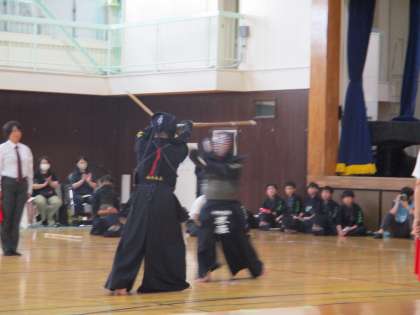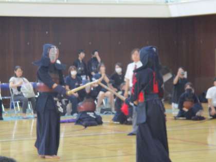 市総体2日目の応援、ありがとうございました。現時点の結果です。これからも本校生徒たちの活躍への応援をよろしくお願いします。(写真は、剣道部の試合の様子です。)