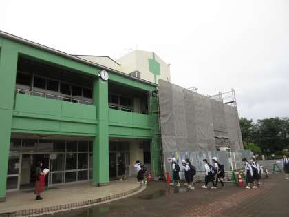 6月10日(月)朝の様子 その3 公開日 2024/06/10 更新日 2024/06/10 お知らせ 本校改修工事は、着実に進んでいます。本校外壁の塗装も終わり、周りの足場が少しずつ外されてきています。本校のリニューアルされた外壁が少しずつ姿を現しています。完成がとても楽しみになります!