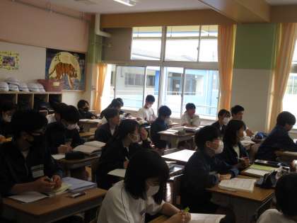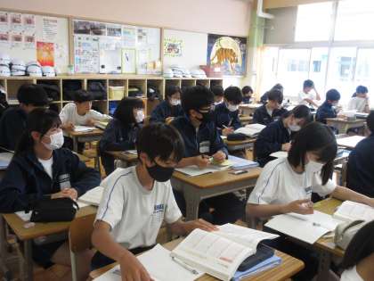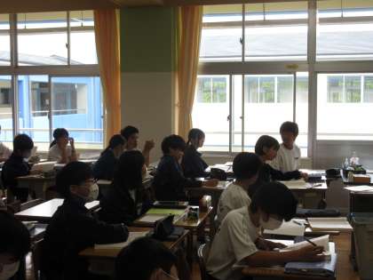 6月10日(月)今日の授業風景 その7 公開日 2024/06/10 更新日 2024/06/10 お知らせ 2年生の国語科の授業です。 「辞書に描かれたもの」の登場人物の「人物像」を表す言葉を考えていました。「言葉の世界を広げる」という資料を見ながら、言葉のイメージを広げる生徒たち。ある登場人物に対して、上品・器が大きい・温和・・・など次々と生徒から出てくる言葉を聞いて、「言葉の世界が広がっているな!」と感じる瞬間でした。
