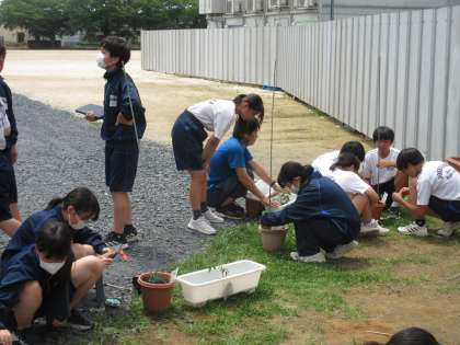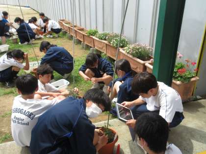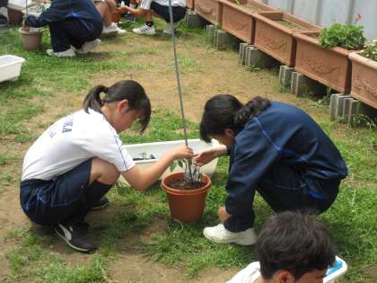 6月12日(水)今日の授業風景 その5 公開日 2024/06/12 更新日 2024/06/12 お知らせ 2年生の技術科の授業です。 「生物の育成の技術」を学習する生徒たち。実際に植物の植え替え作業を行っていました。しっかり育てながら、技術の学習を深めていってほしいです!
