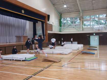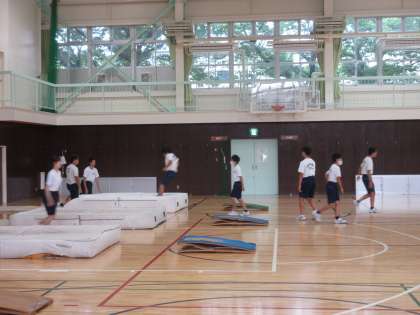 6月13日(木)今日の授業風景 その4 公開日 2024/06/13 更新日 2024/06/13 お知らせ 2年生の体育科の授業です。 体育館では、「幅跳び」の学習に取り組んでいました。1・2・3・4・5のリズムを大切にしながら、場の工夫がされたところで、練習に取り組む生徒たちです!