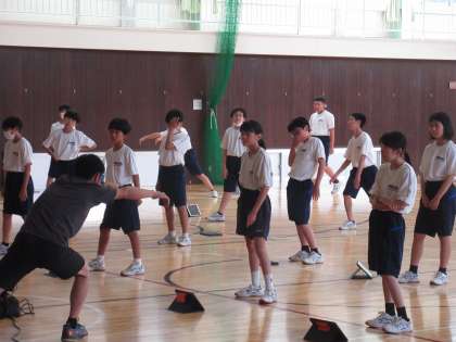 6月17日(月)今日の授業風景 その7 公開日 2024/06/17 更新日 2024/06/17 お知らせ 1年生の体育科の授業です。 「ソーラン節」にチャレンジする生徒の姿を見たいと、もう一度。体育館に行くと、一生懸命に踊る生徒の姿が・・・。前後に体重移動をさせる生徒たちの姿を見て、またまた、嬉しく感じてしまいました!