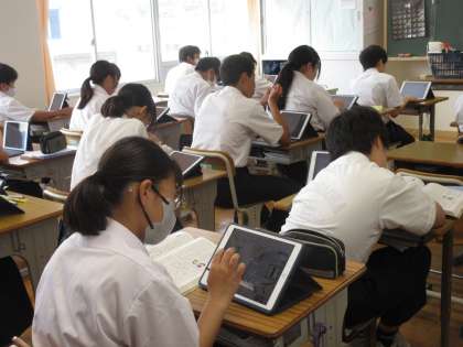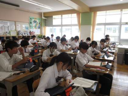 6月17日(月)今日の授業風景 その10 公開日 2024/06/17 更新日 2024/06/17 お知らせ 2年生の国語科の授業です。 「情報を図や表に整理する」というテーマのもと、学習を進めていました。縦の項目と横の項目に分け、複雑な情報をわかりやすくまとめる方法に気付いていました。タブレットの上手にまとめる生徒たちの姿が見られる教室でした!
