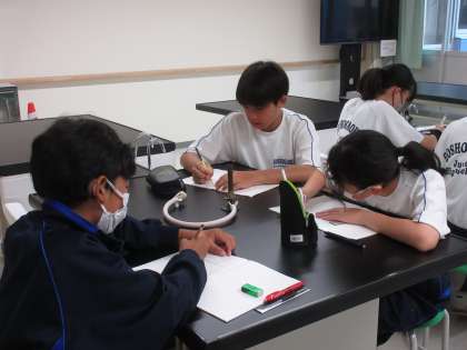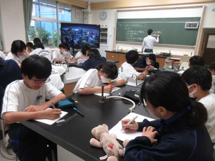 6月18日(火)今日の授業風景 その3 公開日 2024/06/18 更新日 2024/06/18 お知らせ 1年生の理科の授業です。 「ガスバーナーの使い方」を学習していました。机の真ん中に置かれたガスバーナーを見ながら、その使い方を確認していました。これからの実験でよく使う器具です。しっかり使い方を身に付けてほしいです!