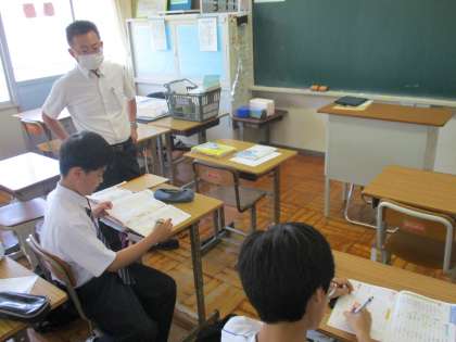 6月19日(水)放課後の学習相談【1年生】 公開日 2024/06/19 更新日 2024/06/19 お知らせ 今週、金曜日の前期中間テストに向け、生徒たちは、現在、テスト対策に取り組んでいます。今日は放課後の時間を活用して、「学習相談」を実施しました。本校の特色ある取組の1つです。1年生の教室での「学習相談」の様子です!