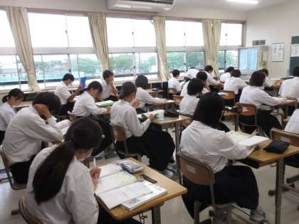 この後、8時35分から中間テストが全学年で始まります。全員が最後までやりとげることができるように、見守ってまいります。(写真は、3年生の朝の教室です。)