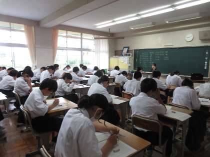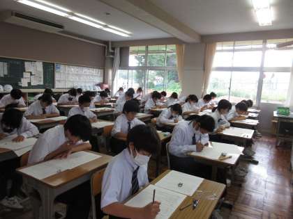 1年生の教室です。初めての定期テストに臨む1年生!頑張っています!