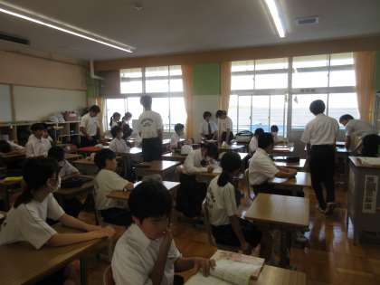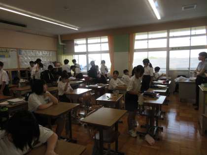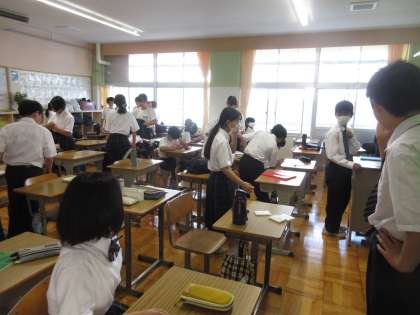 校舎改修工事に伴い、1年生は今日から、リニューアルされた4階の教室での生活が始まります。見晴らしもよいこと・教室の電気がLEDで明るいこと・・・などから、朝の準備をいつも以上に笑顔で行っているように感じました!