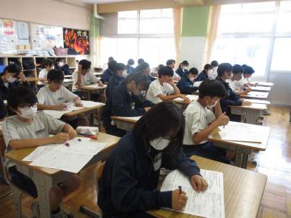 6月24日(月)今日の授業風景 その3 公開日 2024/06/24 更新日 2024/06/24 お知らせ 2年生の英語科の授業です。 テストの返却が行われていました。ていねい見直しをする姿、落ち着いた雰囲気の中で学習を進める生徒の姿・・・。生徒たち、一人一人頑張っていました!