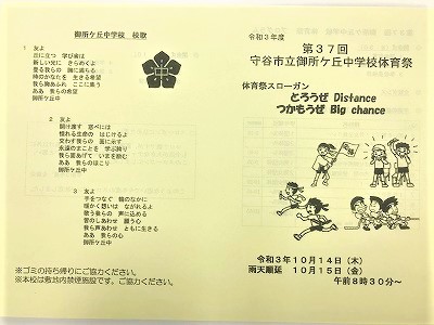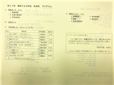 ※確認ですが,明日の体育祭を観戦できるのは,3年生の保護者のみとなっております。ご理解とご協力をお願いいたします。